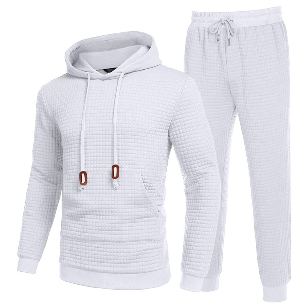 - Features:The men's jogging set contain a variety of fashion elements?plaid jacquard, solid pattern, drawstring hooded pullover with a kangaroo pokcet. long pants with adjustable drawstrings, 2 side pockets and 1 rear pocket,which allow you to bring small things like keys, phone, wallet, etc.